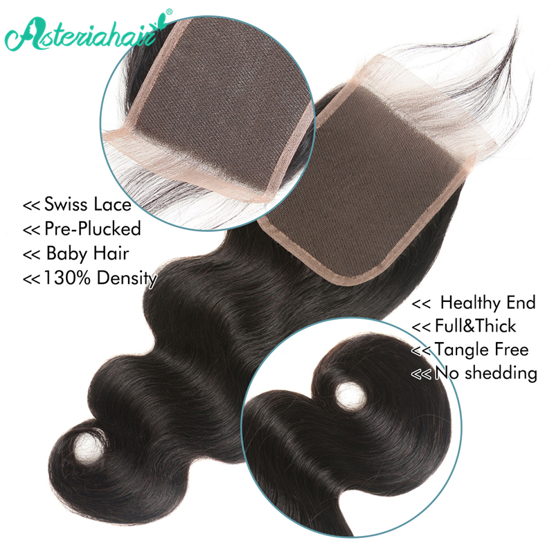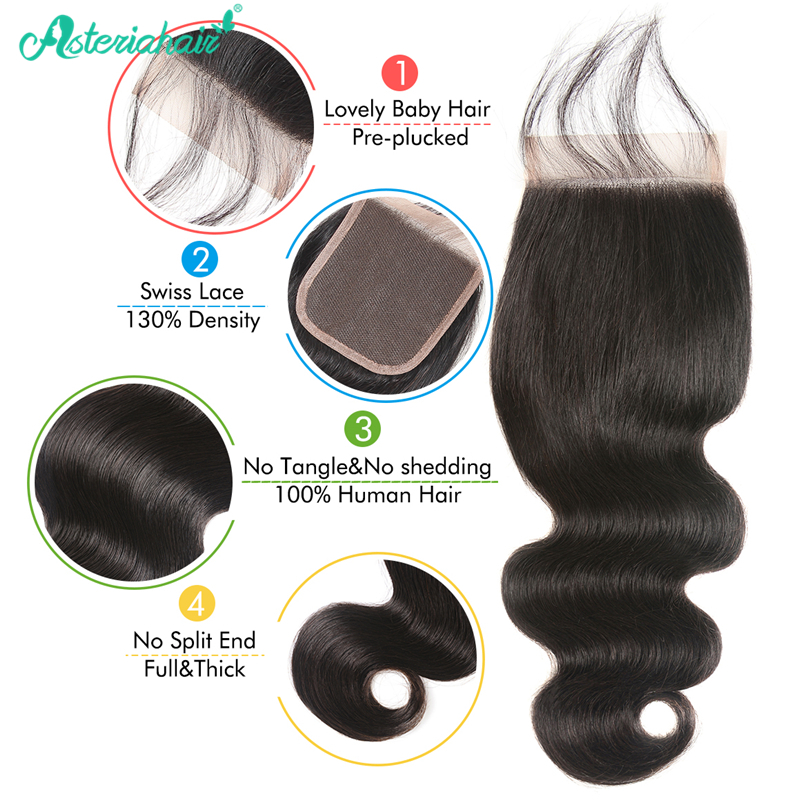 • Asteria Hair 100% Brazilian Virgin Hair Body Wave Lace Closure, Free Part 4x4 Closure Can be Parted anywhere you like.