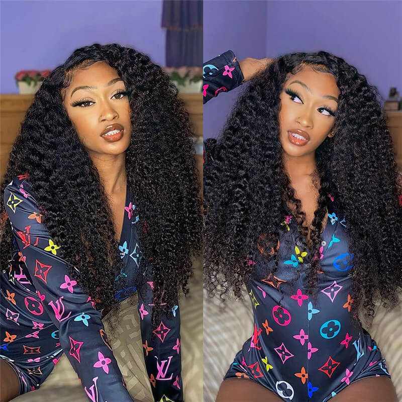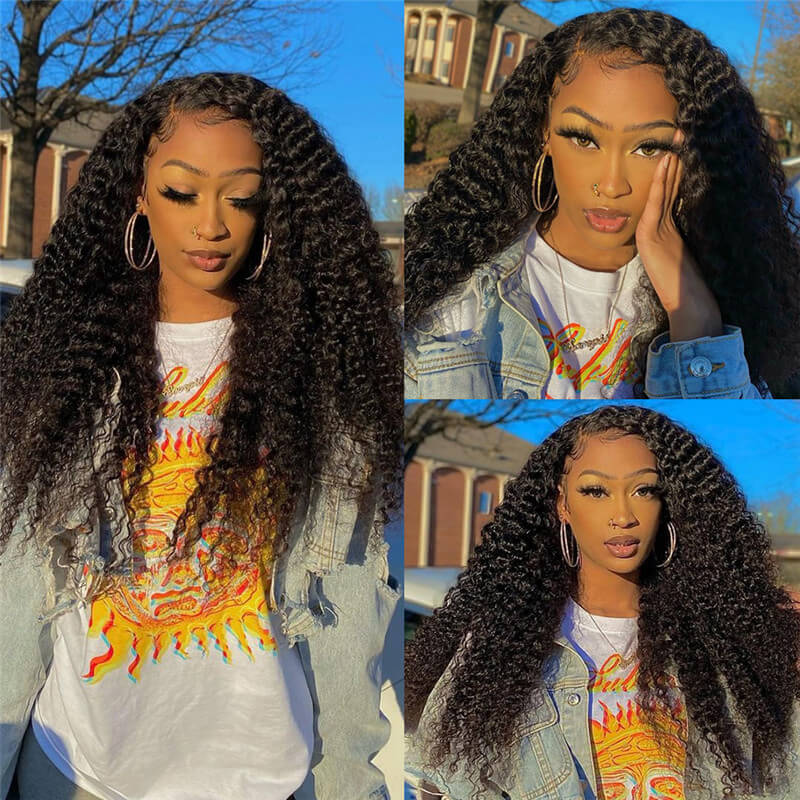 curly hair 5x5 HD lace front wig has 5x5 lace closure at front, it's beginner-friendly wig type; curly hair 13x4 HD lace front wig has curly lace frontal at the front, ear to ear lace front gives the natural hairline, no part hairstyle, deep side part, half up and half down hairstyles can be handled easily. curly hair 13x6 HD lace front wig has 6inch deep parting space, big head friendly.