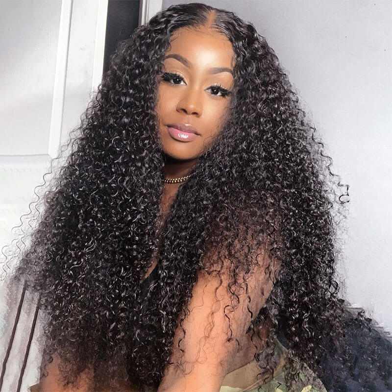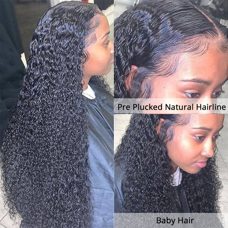 This item is a long curly human hair wig, pre-plucked natural hairline, baby hair premade, natural black hair color. Long curly wigs have 180% density and 250% density, as curly hair is a kind of big hair, 180% density is popular, but if you prefer big hair, 250% density would be your best choice.