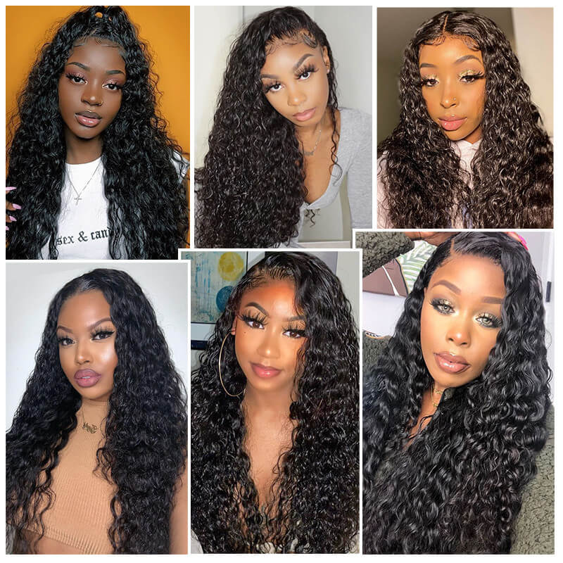• Natural Water Wave Lace Front Wigs 12-24in Water Wave Wigs For Women